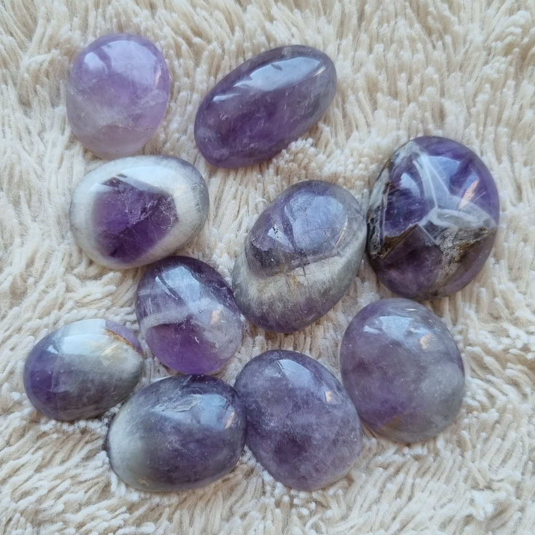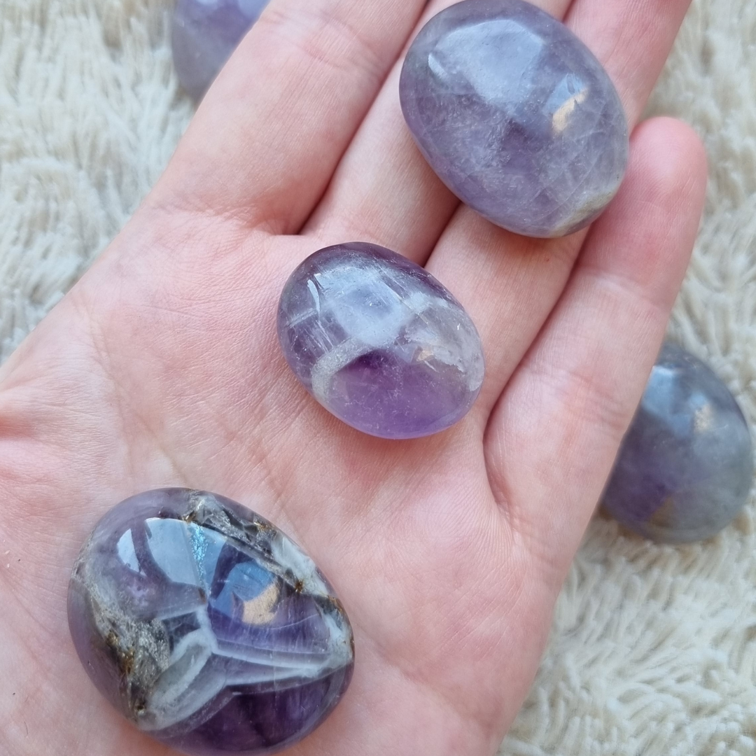Deze amethist zaksteen kan je gebruiken om mee te mediteren, om je intenties te visualiseren en bij je te dragen in je broek of handtas.