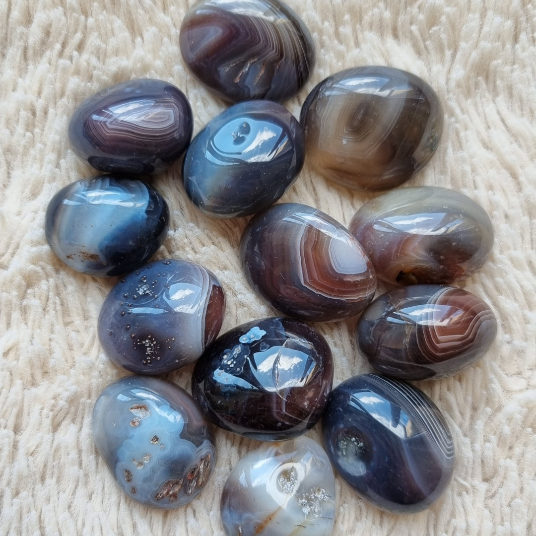 Deze botswana agaat trommelsteen kan je gebruiken om mee te mediteren, om je intenties te visualiseren en bij je te dragen in je broek of handtas.