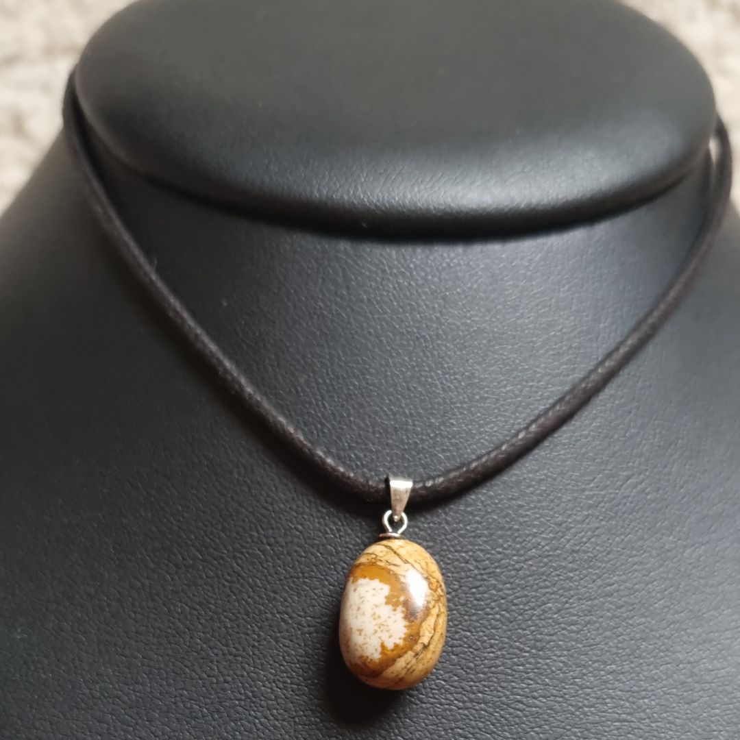 Gezondheidshanger van landschapsjaspis met sterling zilveren oogje. Ideaal om je intentie dichtbij te dragen, onder je kleding of boven.